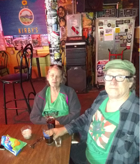 Here I sit in a counter-culture bar, Kirby's, with my wife, Cam Gentry.