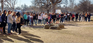There were about 3,000 student walkouts planned for today. Several hundred students walked out of High School North to protest gun violence and call on legislators to pass more restrictions on guns. Althought school officials cooperated with and tollerated this walk out, USD 259 School officals did not OK the walk out.