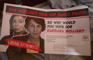 As I read the latest attack ad I received in the mail, I noticed a tactic the local Republicans use- that is, the use of a Bogeyman. In this case it was Nancy Pelosi. As the flyer said, “You wouldn’t vote for Nancy Pelosi. So why would you vote for Barbara Bollier?”
